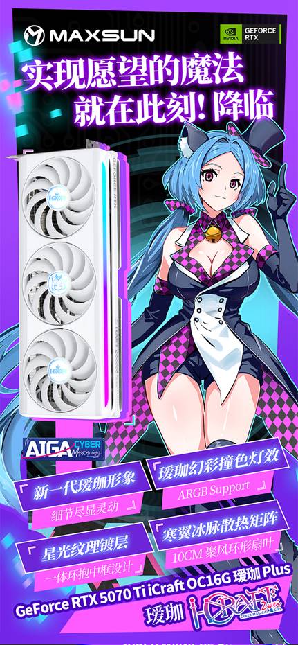 銘瑄GeForce RTX 5070 Ti iCraft OC16G 璦珈 Plus采用新一代Flow Design設計語言,升級全新億萬納米光刻星光紋理鍍層,隨光線角度不同會變換出豐富的璀璨軌跡,同時一體環抱中框造型能提供更強防護。
