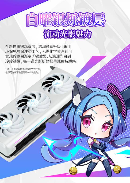 銘瑄GeForce RTX 5080 iCraft OC16G 璦珈采用全新白曜銀爍鍍層,溫潤觸感升級!采用環保免噴涂注塑工藝,無需化學噴涂即可實現珍珠白漸變閃銀效果,從溫潤乳白到冷峻銀輝,每一道光影折射都呈現獨特質感。