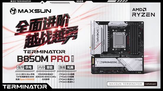 在此推薦兩款高度適配歲末煥機(jī)需求的優(yōu)質(zhì)之選——銘瑄Terminator B850M PRO WIFI和Terminator B850M PRO DARK WIFI主板。這兩款主板不僅能完美搭配AMD銳龍7 9800X3D處理器,釋放處理器的強(qiáng)勁性能,更以一黑一白的個性設(shè)計(jì),滿足不同玩家的主機(jī)打造需求,讓你的元旦假期游戲體驗(yàn)全面升級,戰(zhàn)力飆升!