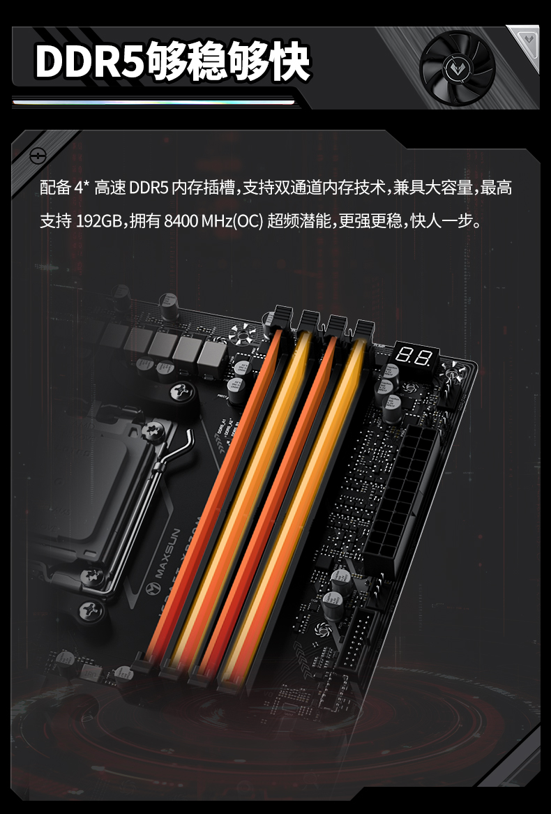 作為旗艦主板,MS-iCraft X870M的拓展能力同樣拉滿。它完美適配 AMD 銳龍 7000/8000/9000系列 AM5 處理器,更預留了對未來后續系列處理器的支持空間。內存方面,配備4*高速DDR5內存插槽,支持雙通道內存技術,最高支持192GB,更擁有8400MHz(OC)超頻潛能,搭配AMD銳龍 9 9950X3D2處理器的超大緩存,游戲加載、多任務切換都能絲滑無卡頓。