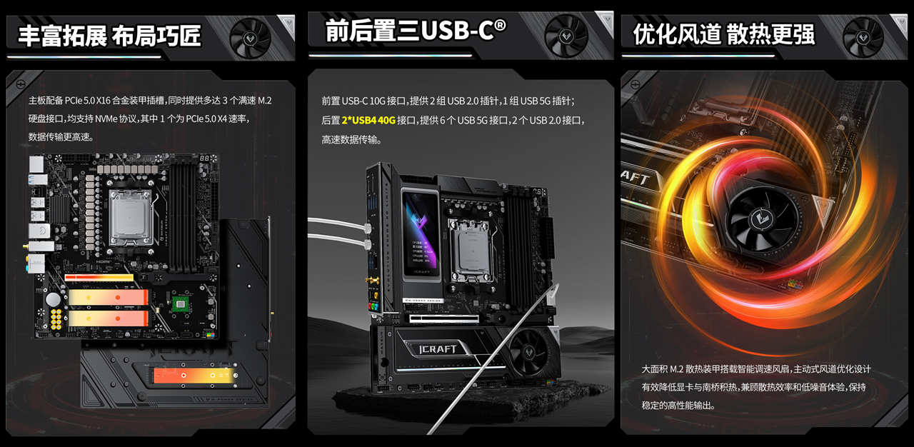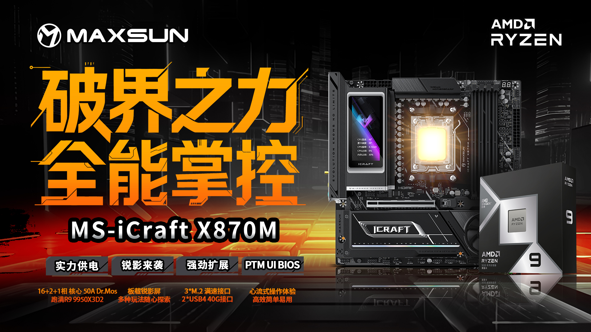 好馬配好鞍,強悍的新處理器,自然需要同強悍的主板搭檔才能解鎖全部實力。作為 AMD的核心合作伙伴,銘瑄 AM5 全系列主板全面支持AMD銳龍 9 9950X3D2 處理器。在眾多優秀產品中,作為旗艦之作的銘瑄 iCraft X870M主板,更是為釋放這顆旗艦處理器戰力量身打造,以硬核供電、個性設計、全能拓展,為硬核玩家與創作者搭建無瓶頸的高性能平臺。